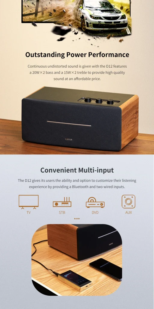 Edifier D12 Classic Wooden Bluetooth Speaker | 70W High Power