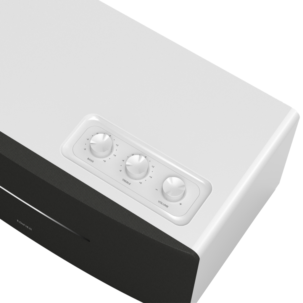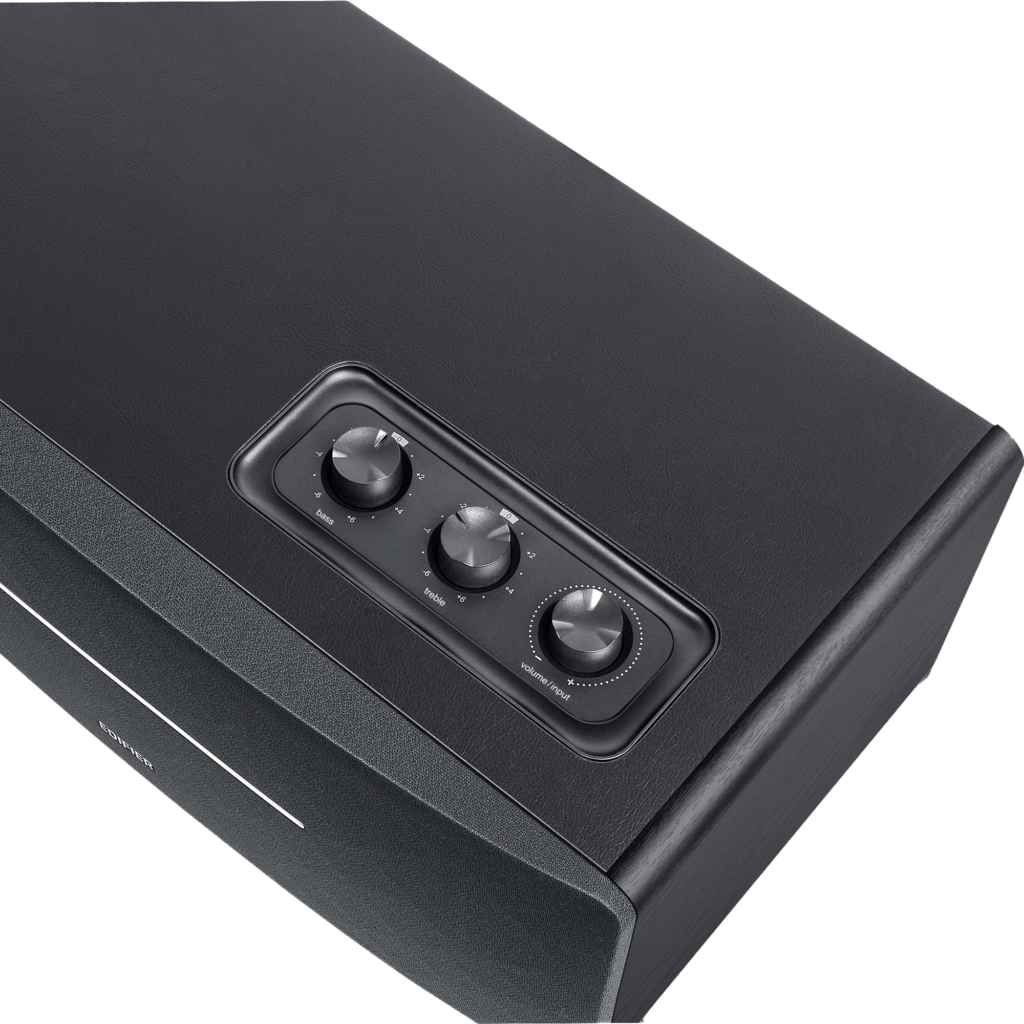 - Switch between sources, EQ levels, and volume with a simple twist of a knob