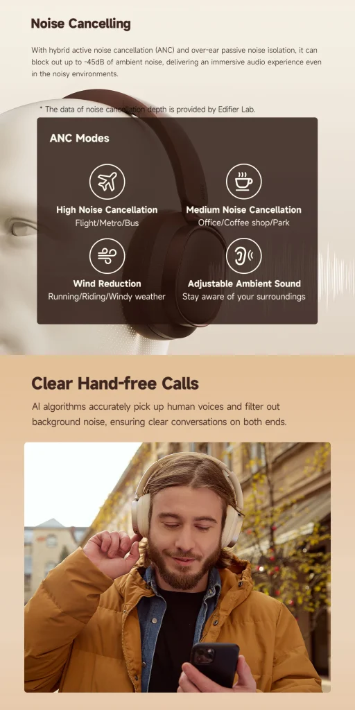 Edifier W820NB Plus Noise Cancelling Headphones | 88H Battery