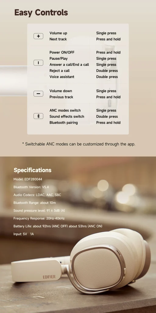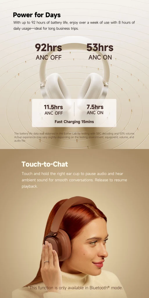Edifier ES850NB Wireless ANC Headphones | Incredible 92-Hour Battery