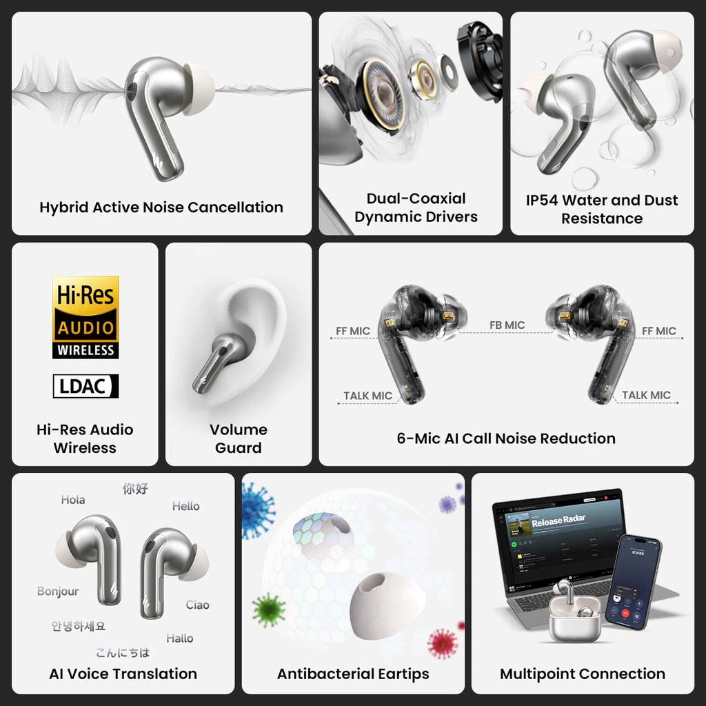 Edifier EvoBuds Pro Hi-Res ANC Earbuds | AI Voice Translation & Bluetooth 6.1