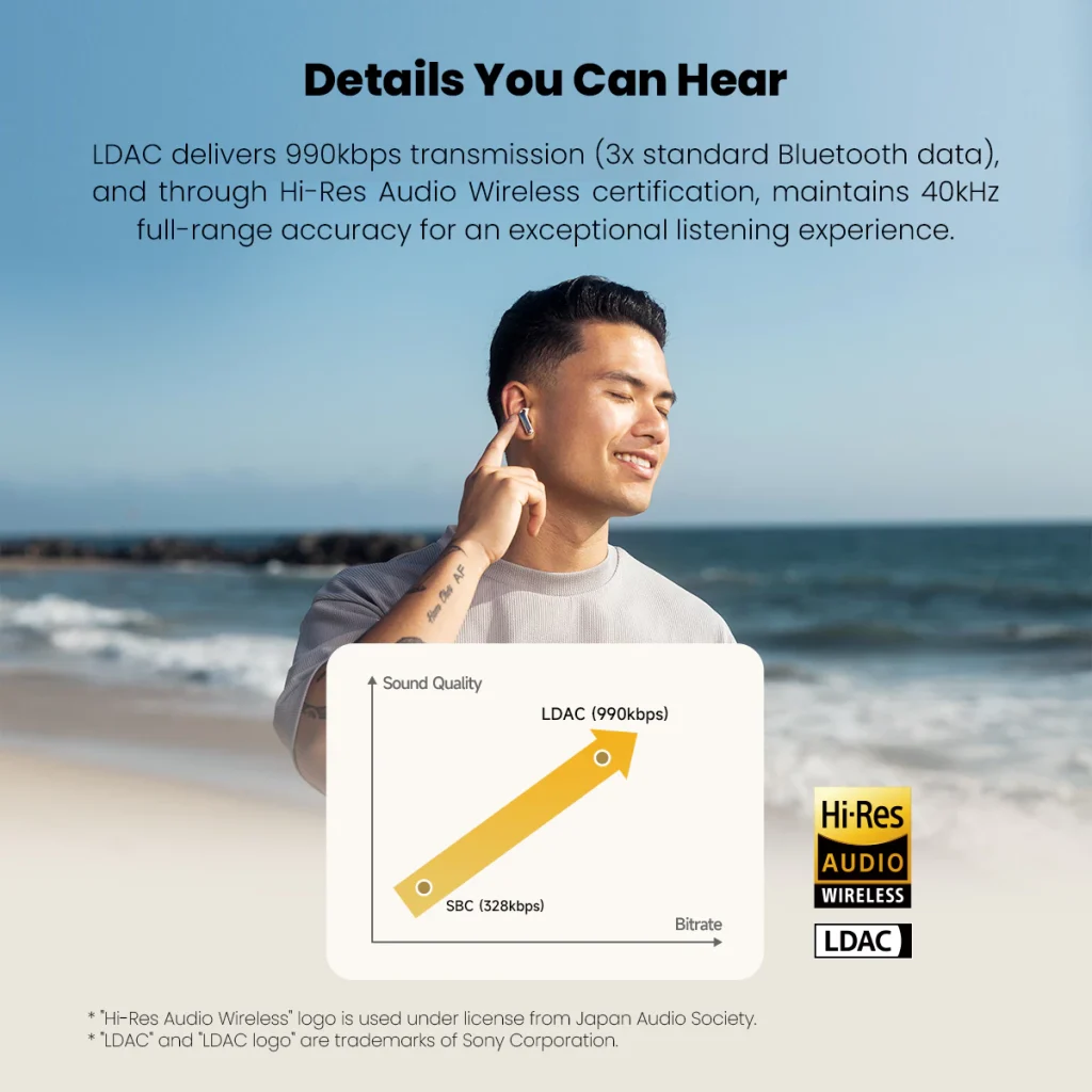 - Hi-Res Audio Wireless certified with LDAC high-resolution streaming