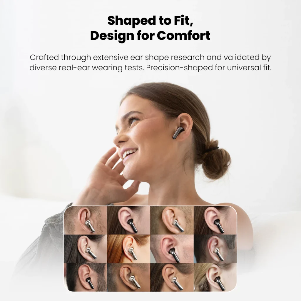 - Lightweight and ergonomic semi-in-ear design for all-day comfort