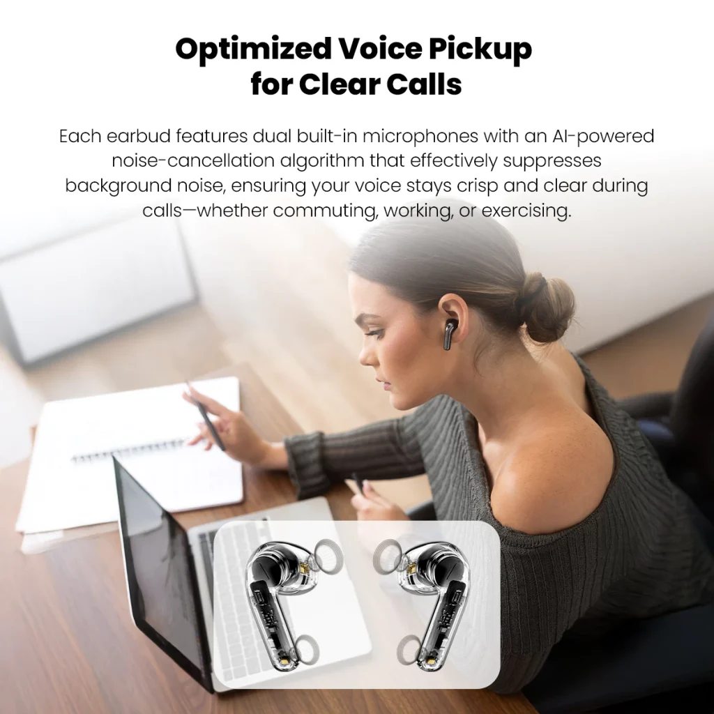 - Dual-mic noise cancellation ensures clearer, more natural calls