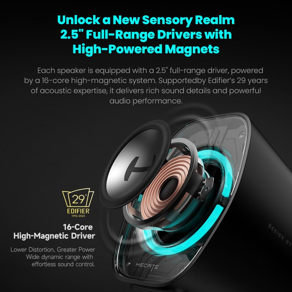 - 2.5″ Full-Range Driver with 16-Core Magnetic Circuit