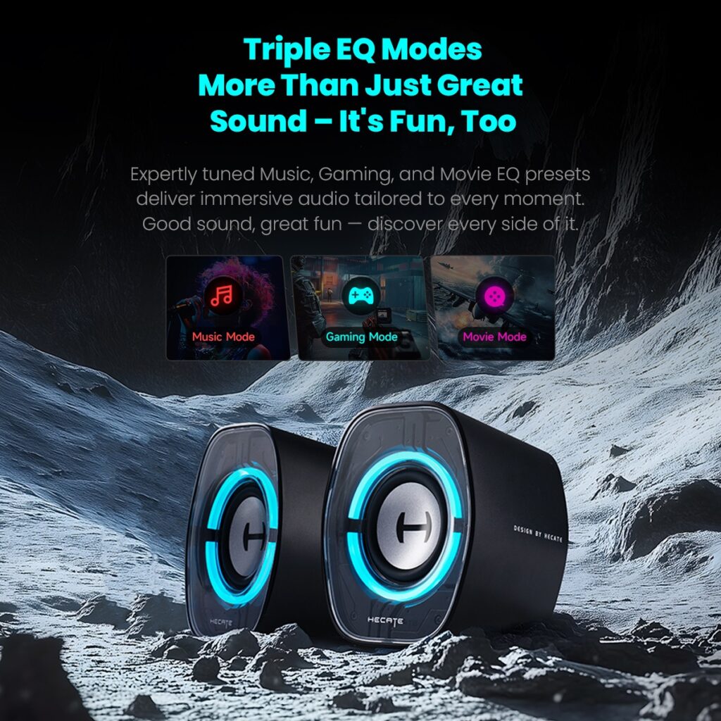 - Expertly tuned Music, Gaming, and Movie EQ presets deliver immersive audio optimized for any experience