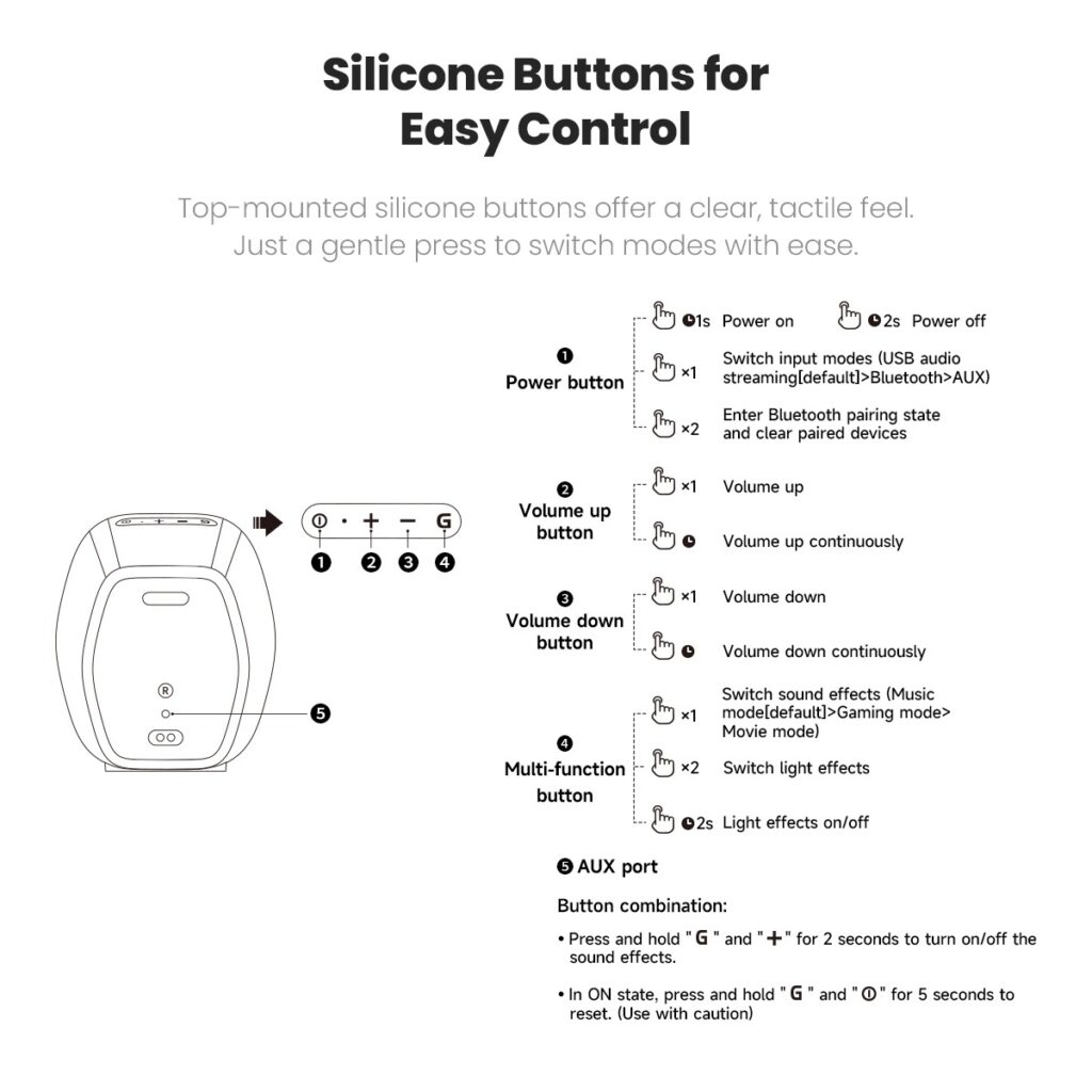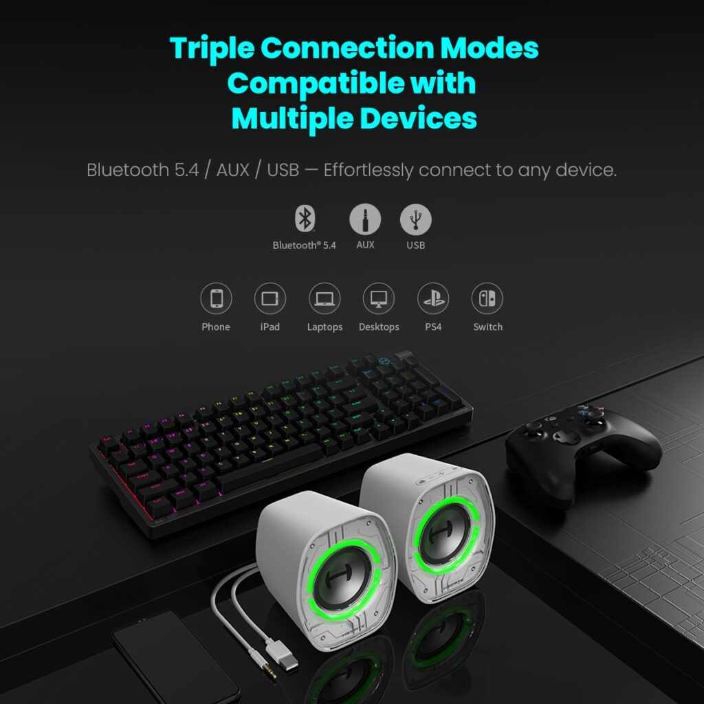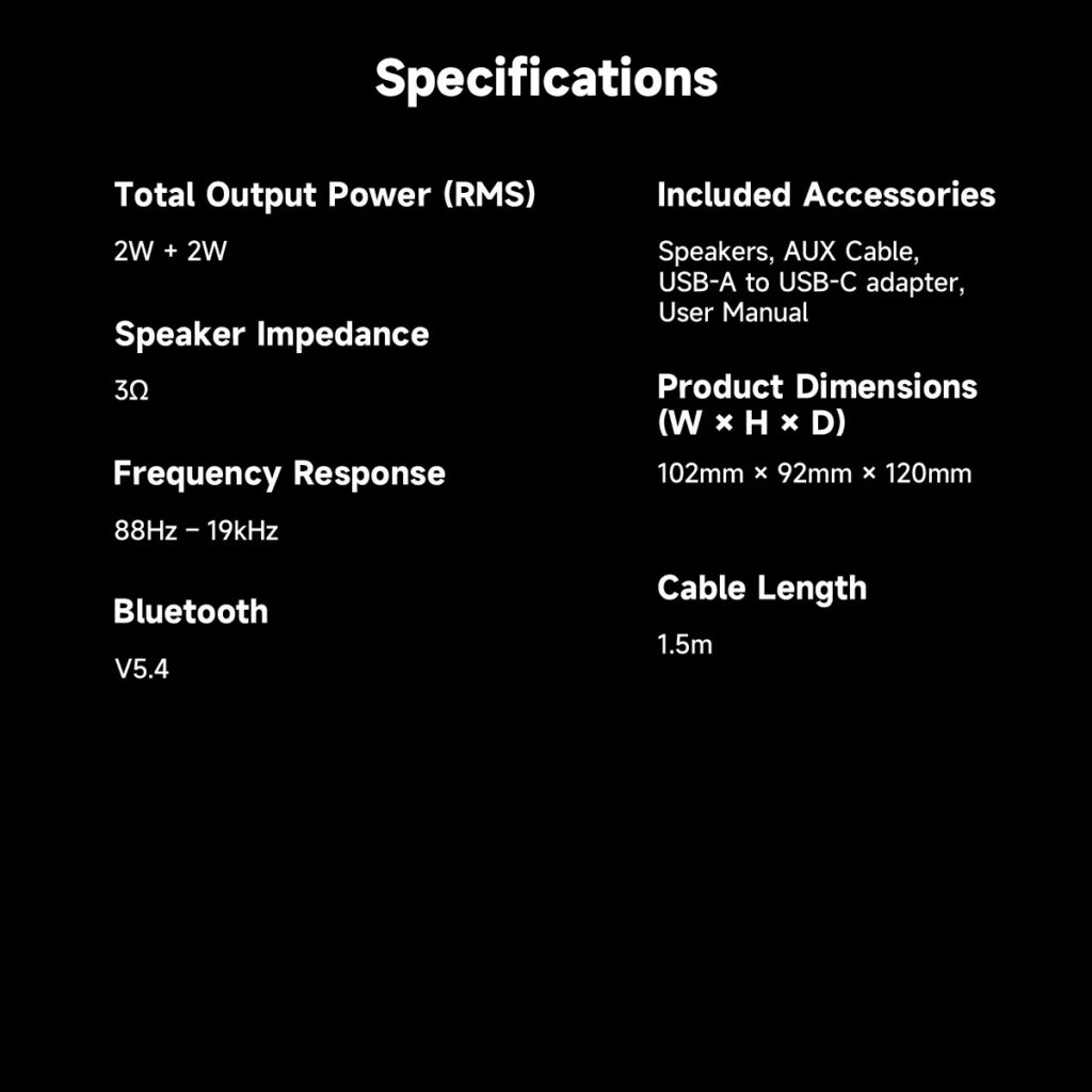 - All-in-One Connectivity: Bluetooth 5.4 / AUX / USB-A / USB-C