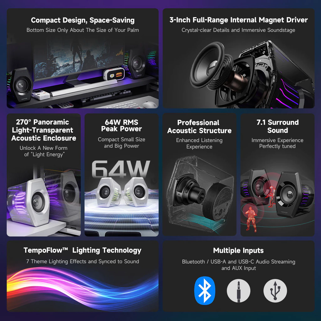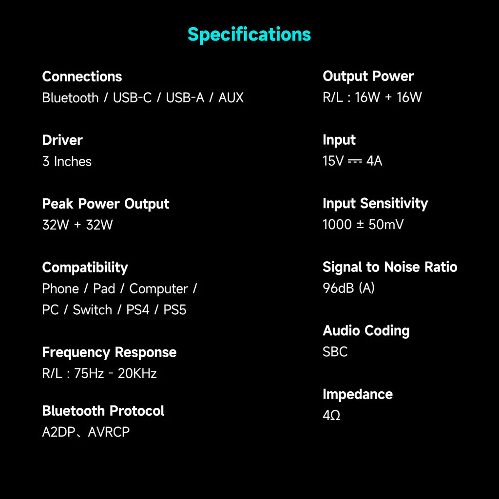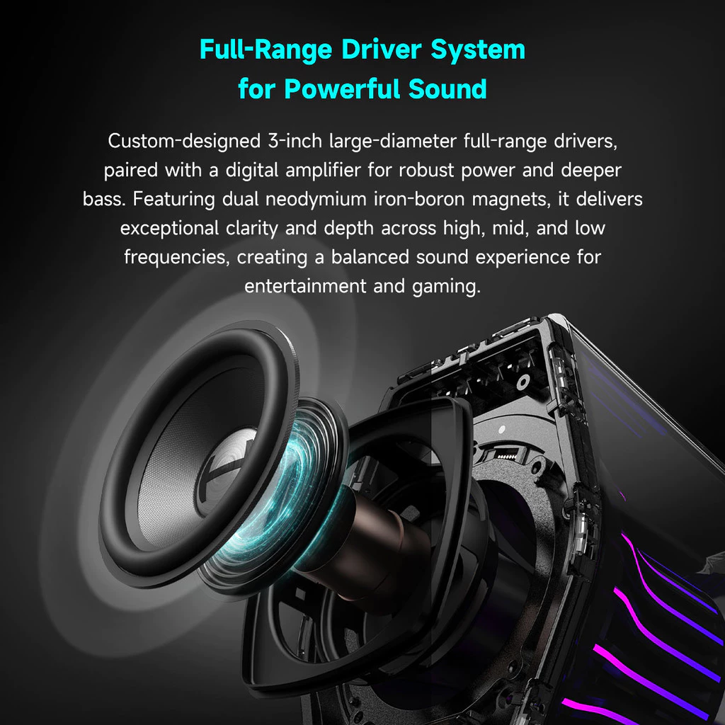 • 3 inch Full-range internal magnet driver delivers crystal-clear audio with rich details and an immersive soundstage