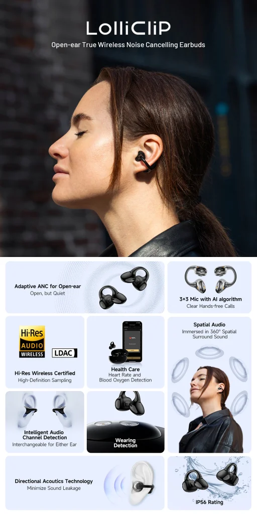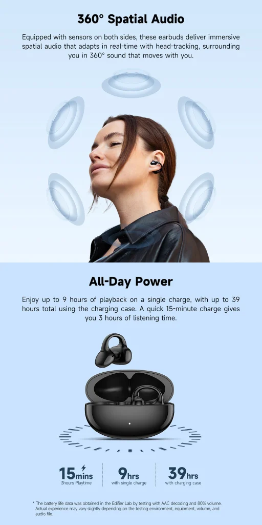 Edifier LolliClip Flagship Open-Ear Clip-On Earbuds | Hi-Res & Heart Rate Tracking
