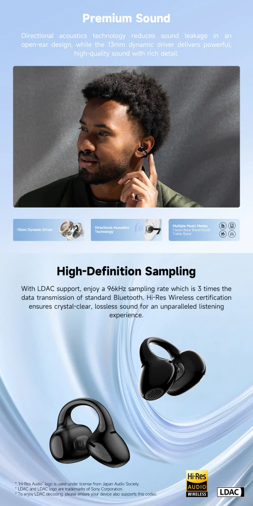 - Directional acoustic technology minimizes sound leakage, enhancing sound quality.