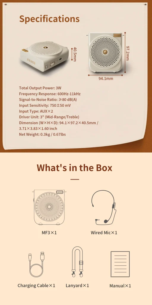 Edifier MF3 Portable Voice Amplifier with Mic | 20-Hour Battery