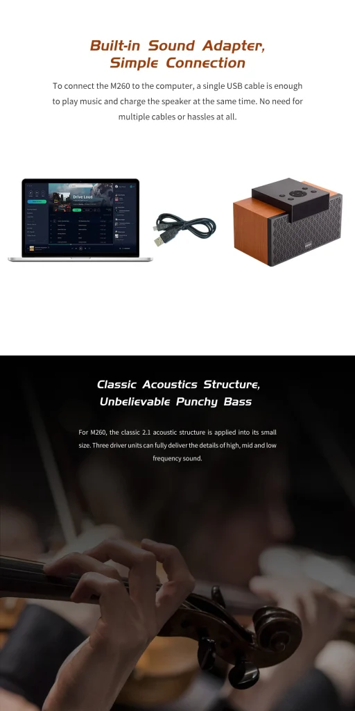 - Strong and Powerful: 8W (Tweeter) + 12W (Subwoofer)