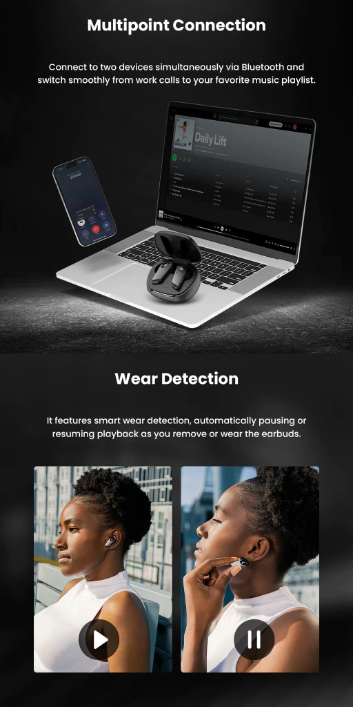 - Multipoint Connection: Effortlessly switch between multiple devices for enhanced usability