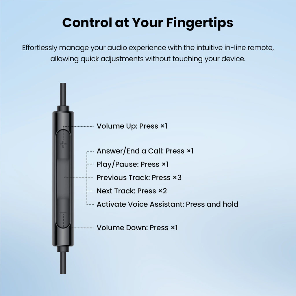 - User-friendly in-line remote makes music and call control effortless