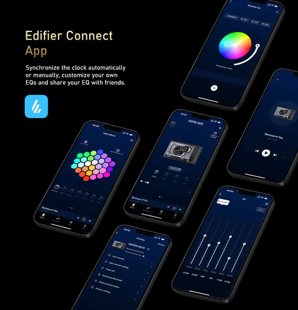 - Support Edifier Connect apps for custom EQ, LED color etc.
