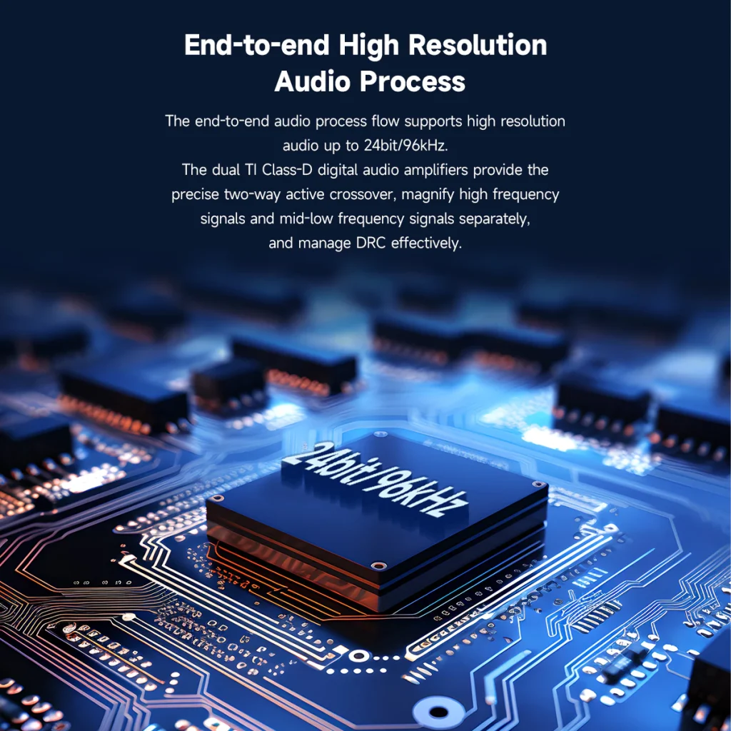 - MazeTube bass reflex channels for strong bass and TurbMuff air noise suppression technology