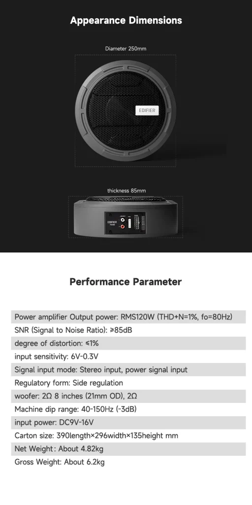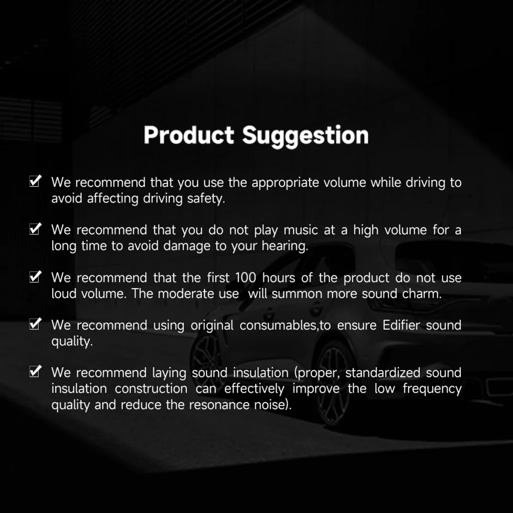- Adjustable the low frequency for complement the original audio system.